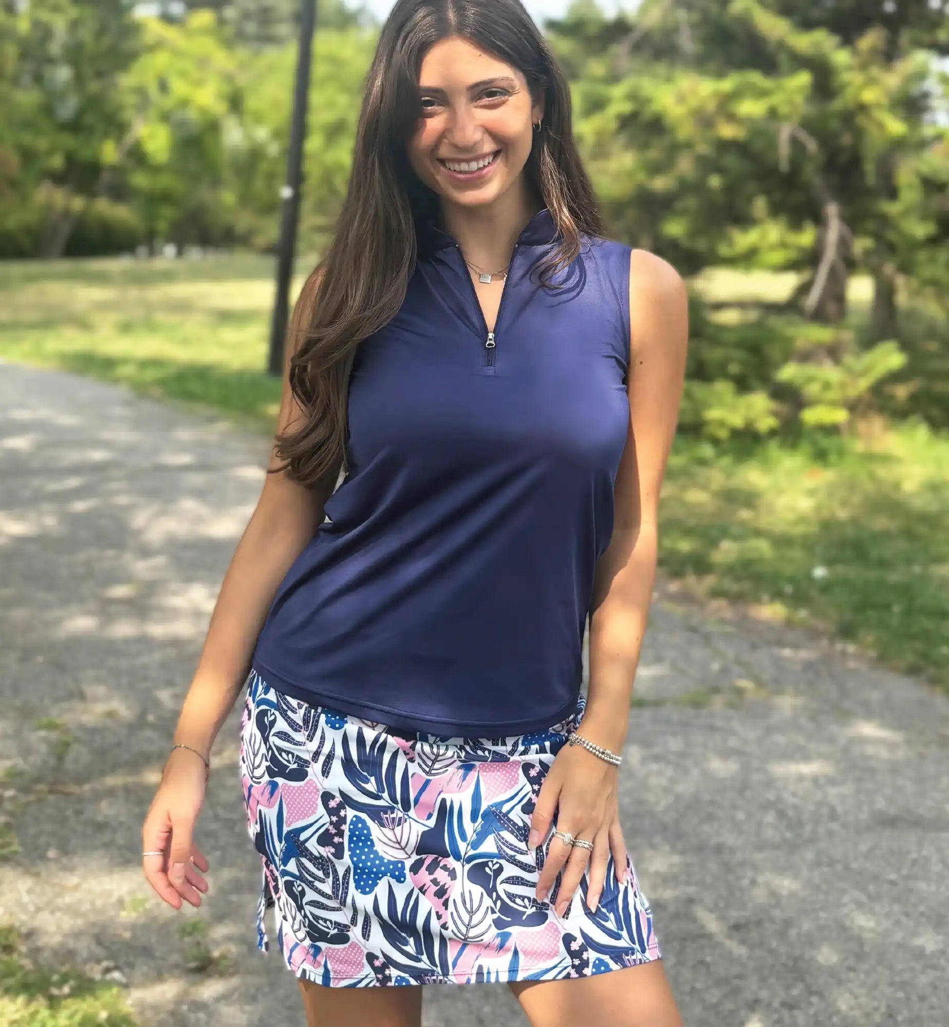 Our skorts are quite unique. You can wear them high on the waist for a cute, sporty short look or on the natural waist so you can have a longer elegant look.
