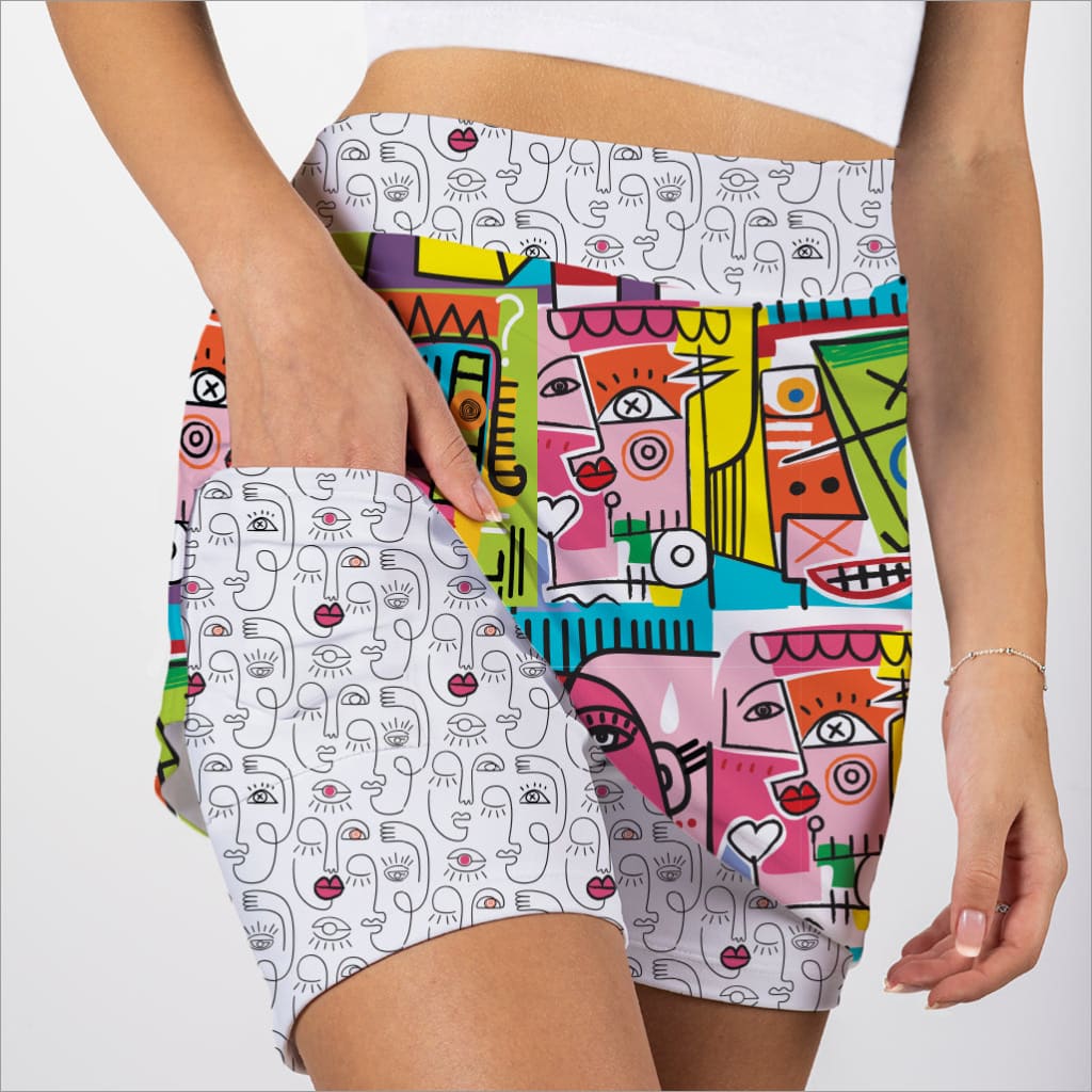 Make a bold statement with our PICASS-OH Designer Skort! Inspired by abstract art and a fearless love of color, this skort is perfect for those who want to express their creative side—whether on the court, the green, or just out and about. With a lively, painterly print that turns heads, the PICASS-OH Skort brings artistic flair to every move you make.